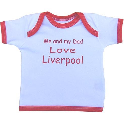 Me and my Dad Love Liverpool Baby T Shirt Newborn-24 months in 9 Colours -This is an envelope neck t shirt specially designed so that it does not pull your baby's ears off. This is a quality UK made garment that will help you to show your love for Liverpool. It is made from 100% Cotton and machine washable at 40 degrees. Available in sizes newborn, 0-6, 6-12 and 12-24 months.