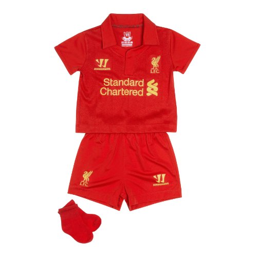 - Product Detail: Includes shirt, shorts and socks. Heat applied manufacturer logo and iconic Liverpool FC crest on upper chest.